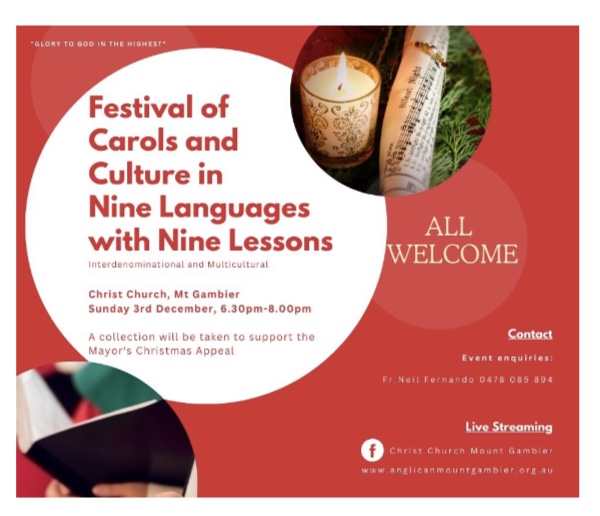 Festival of Carols and Culture in Nine Languages with Nine Lessons 3 December 6.30pm Posted in Church Blog