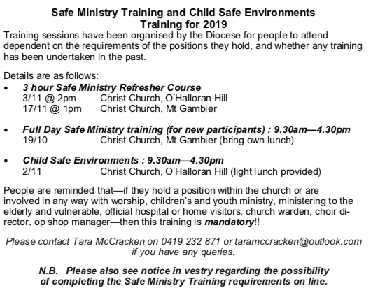 Safe Ministry Training reminder 2019.05.10-Safe-Ministry-Training-Circular-1Download Posted in Church Blog